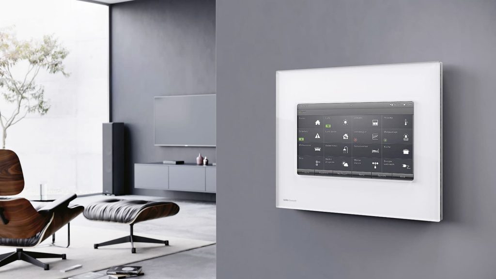 Wir ermöglichen Ihnen eine smarte Gebäudesteuerung sowohl über ein mobiles Endgerät als auch über ein Zentralpanel in Ihrem Eigenheim.